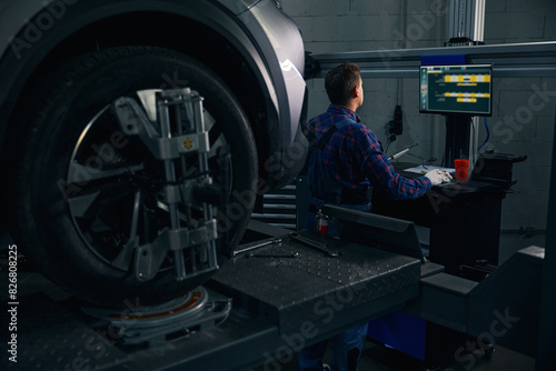 man, mechanic, garage, fix, wheel, instrument, check, examine, professional, job, hard, maintenance, employment, change, alignment, diagnostic, auto, automotive, technology, adviser, technician, safety, workplace, inspection, master, vehicle, modern, occupation, workshop, adult, service, automobile, station, tyre, concentrated, repair, repairman, work, transport, test, uniform, industry, car, male, tied-up, business, machine, control, engineering