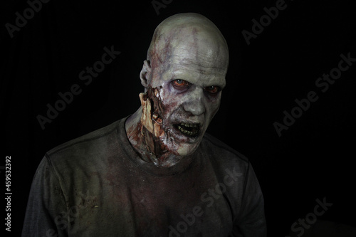 portrait, face, make-up, monster, zombie, blood, bloody, horror, film, television, motion picture, latex, mutant, evil, woman, undead, dead, fantasy, scar, wound, bleeding, creature, creepy, halloween, scarey, death, dark, emo, prosthetic, silicon, fx, effect, casual attire, man, model, male, green, bald, blue eye