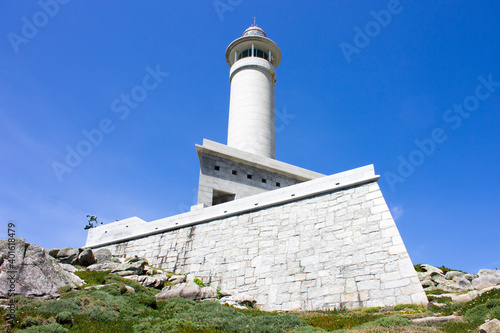 galicia, lighthouse, headland, cape, coast, rocky, coastline, shore, beach, sea, water, mediterranean, atlantic, ocean, punta, point, scenic, landscape, death, travel, tour tourism, holiday maker, destination, blue skies, sunny, warm, sunlight, exterior, outside, outdoors, beautiful, europa, european, blue, green, cloudy