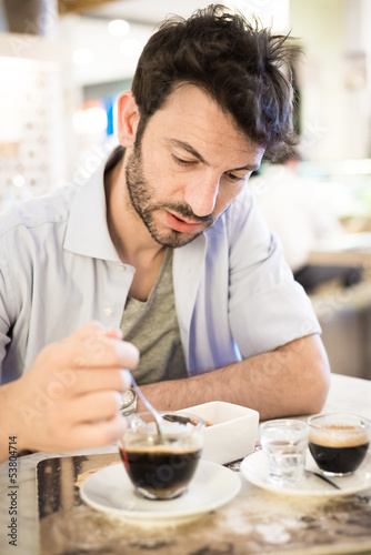 man at the bar drinking coffee