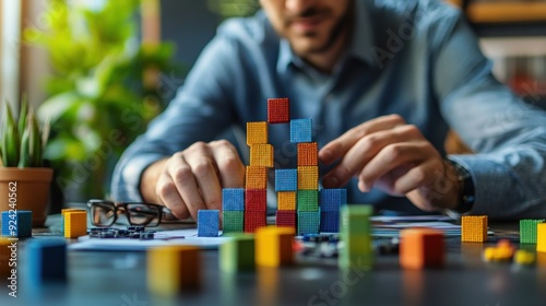 block, building, tower, man, hand, desk, workspace, office, construction, colours, colourful, many-coloured, toy, business, strategy, success, growth, achievement, plan, solution, puzzle, problem, teamwork, creativity, sharpened, concentration, thinking, idea, imagination, vision, innovation, design, future, concept, challenge, opportunity, project, risk, leadership, decision, progress, development, analytic