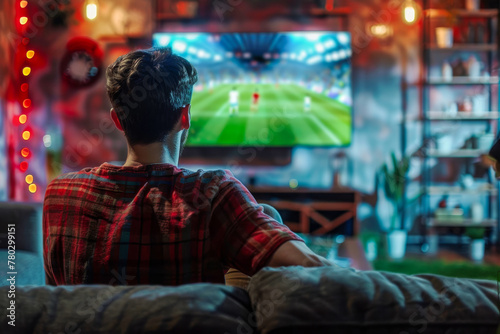 Man engrossed in exciting football game