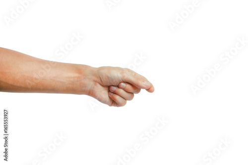 Man hand hold card, credit, blank paper or other isolated on white background.
