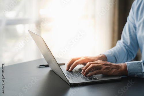 man hands typing on computer keyboard closeup banner, businesswoman or student girl using laptop at home, online learning, internet marketing, working from home, office workplace freelance concept