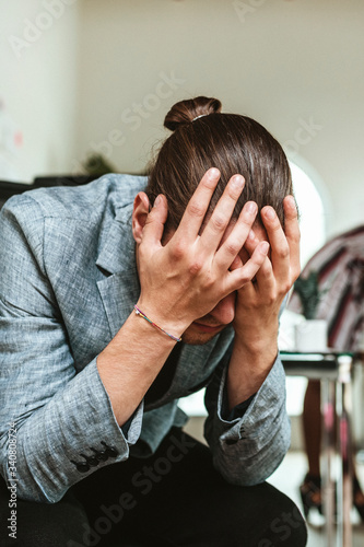 anxiety, attack, bad, break, businessperson, businessman, career, deal, depression, difficult, disappoint, emotion, entrepreneur, bankruptcy, formal, frustration, hard, cephalalgia, hipster, indoor, loss, management, migraine, negative, occupation, office, people, problem, recession, relax, rest, sad, sorrowful, serious, sick, situation, social, stress, tension, thinking, sleepy, toughness, white-collar, work, workplace, workload, worry, young men