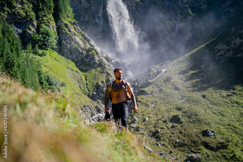 waterfall, landscape, nature, forest, cascade, waterfall, famous, mountain, fall, scenic, beautiful, splash, tour tourism, water, beauty, hiking, alps, traveler, guy, freedom, hiker, portrait, tour, journey, vacation, environment, trail, outside, hike, man, view, holiday maker, rock, top, hill, river, holiday maker, traveler, adventure, summer, europa, lifestyle, wild, landmark, trip, travel
