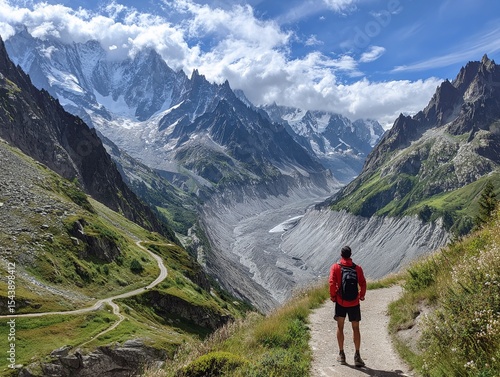 man, hiking, majestic, mountain, adventure, scenic, trail, hiker, backpack, nature, exploration, landscape, beautiful, journey, travel, trekking, rugged, peak, snow, glacier, green, red, sky, blue, cloud, trail, path, viewpoint, vista, freedom, wilderness, active, sport, healthy, lifestyle, european, alps, summer, holiday, vacation, fitness, discovery, inspire, wanderlust