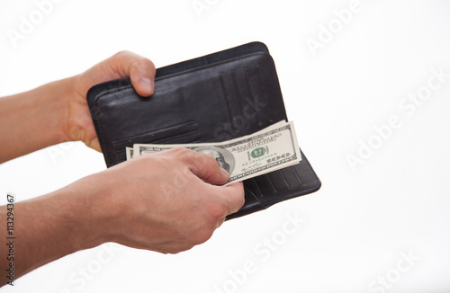 alms, american, banknote, black, business, businessman, capital, cash, charity, credit, currency, demonstrate, dollar, earning, finger, give, hand, hold, income, leather, male, man, money, paper, partner, pay, payment, person, pouch, proceed, profit, purse, revenue, salary, savings, show, success, successful, wages, billfold, white background