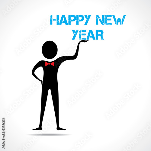 Man holding happy new year text