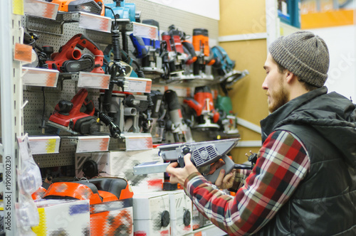 plane, store, hardware, tool, shop, man, construction, product, bricolage, client, builder, buyer, casual attire, choose, electrical, good, grinder, guy, hand, hand, hobby, holding, homework, lifestyle, modern, 1, person, purchase, repair, retail, skill, skilful, home, improvement, sander, caucasian, 30s, adult, looking, male, portrait, shirt, standing, green, metal, racked
