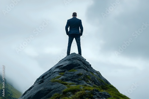 leadership, success, achievement, man, suit, mountain, resilience, ambition, authority, confidence, business, peak, vision, strategy, triumph, power, executive, goal, determination, landscape, challenge, victory, growth, standing