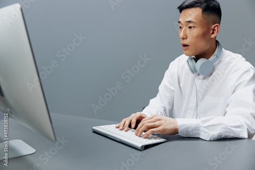 businessman, man, earphones, computer, business, document, laptop, music, painfully, neck, people, mixed race, copy space, exhausted, stress, lightened, smart, work, businessman, ethnic, stretching, telecommuting, worried, sleepy, fatigue, exhaustion, ache, middle eastern, discomfort, muscle, back, remote, domestic, pain, suffer, bad, posture, home