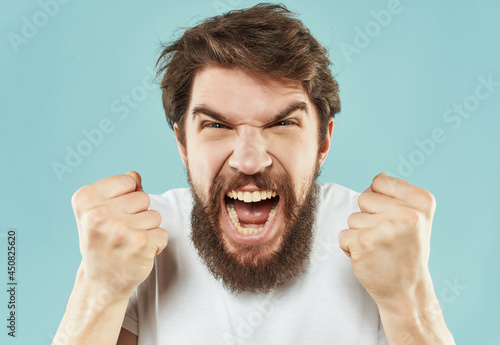 man, male, adult, caucasian, background, person, young, face, portrait, guy, photogenic, white, studio, casual attire, discontent, people, attractive, hair, expression, beard, bearded, concept, trendy, shirt, horizontal, student, indoor, coiffure, gesture, shot, facial, emotion, serious, displeased, red, hipster, human, stylish, head, lifestyle, model, men at work, 1, fashionable, problem, crazy, posing, feeling, emotional, eyebrow