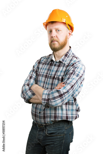 male, guy, engineer, construction, builder, professional, men at work, master, repair, repairman, mender, helmet, working man, foreman, man, bloke, redhead, redheaded, beard, moustache, unshaved, people, isolated