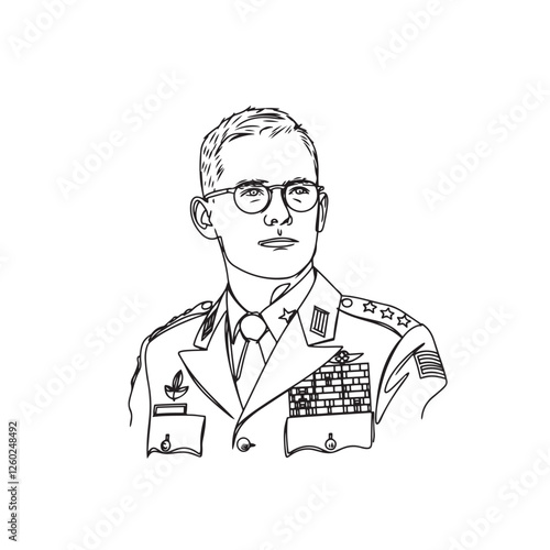 Man in Army Uniform - Stylish Minimalist Soldier Design - Soldier Vector - Army Doodle - Military Illustration - Military Man Line Art