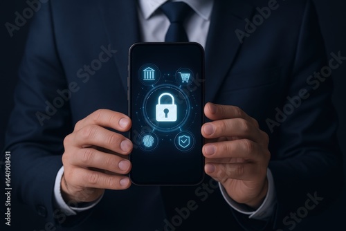 suit, secure, mobile, phone, padlock, icon, datum, protection, security, privacy, businessman, technology, digital, network, cyberspace, online, safety, access, device, application, fingerprint, verification, authentication, banking, shopping, payment, transaction, finance, confidential, information, lock, shield, identity, thieving, fraud, connection, communication, management, professional