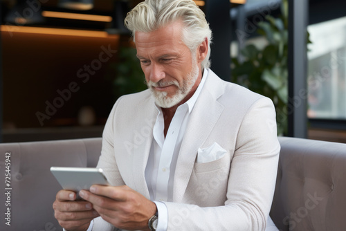 man, person, male, adult, mature, business, businessman, smartphone, caucasian, smiling, technology, phone, portrait, senior, looking, happy, communication, white, sitting, office, manager, using, modern, photogenic, confident, old, elderly, suit, executive, professional, mobile, attractive, working, success, 1, connection, bearded, serious, indoor