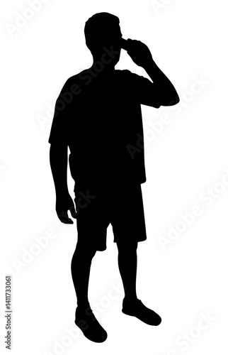 Man is talking on phone, full-length silhouette of man. Vector illustration