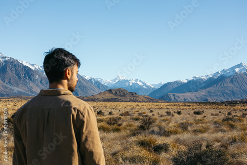 adventure, copy space, destination, hill, landscape, looking, meadow, mountain, nature, new zealand, outdoors, peak, range, backview, rocky, scenic, sky, snow, south island, sunny, holiday maker, travel, winter, yellow