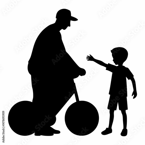 man, boy, bike, children, father, ride, instructing, love, bond, scene, joy, fun, happy, smile, care, hold, hand, together, carry, shoulder, air, up, lift, father, girl, walk, run, jump, black, white, vector, art, silhouette, flat, minimal, simple, funny, moment, play, ball, sport