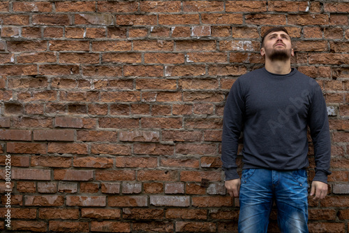 adult, aids, attractive, background, cancer, caucasian, debt, depression, expression, cephalalgia, hiv, hopelessness, lifestyle, loneliness, male, man, migraine, portrait, posing, problem solving, sorrowful, shirt, stress, wall