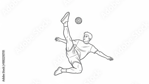 Man Performing Bicycle Kick with Soccer Ball - Line Drawing