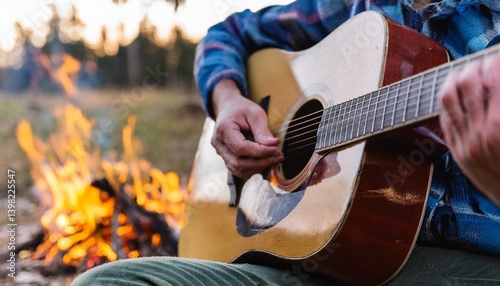balefire, guitar, playing, performance, music, ballad, flames, warmth, melody, rythm, acoustic, live, forest, starlight, nature, leisure, travel, camping, instrument, band, bass, sound, man, person