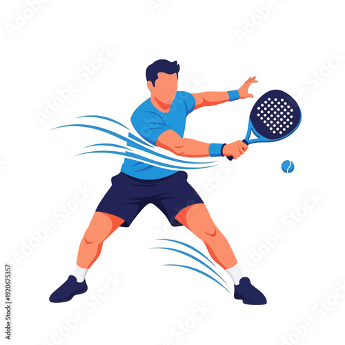 Man playing padel tennis, dynamic action shot, hitting the ball with racket