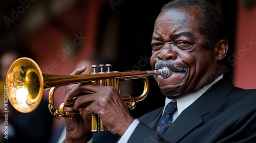 trumpet, music, musician, jazz, performance, brass, band, concert, playing, instrument, black, man, portrait, closeup, serious, sharpened, entertainment, professional, artist, skilled, passionate, talent, sound, note, skill, stage, show, event, culture, african, american, vintage, photo, instrumentalist, closeup, style, passion