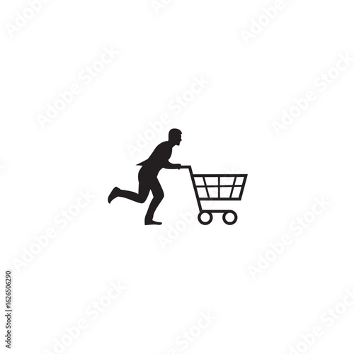 shopping, cart, streetcar, running, silhouette, vector, illustration, speed, fast, black, white, outline, icon, symbol, retail, supermarket, store, consumer, consumption, market, grocery, purchase, urgency, hurry, motion, movement, sale, discount
