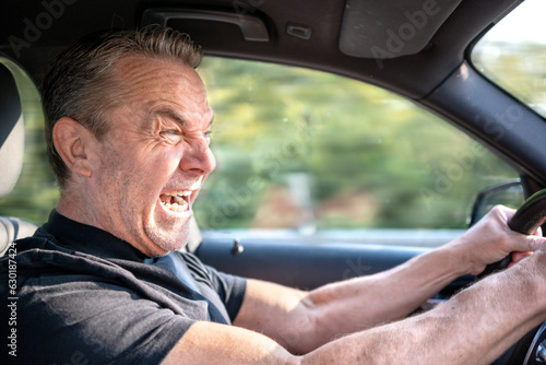 accident, car, crying, dangerous, driving, fast, open mouth, shouting, 60, age, aged, black, blue eye, collar, grey hair, grey hair, man, middle, middle-aged, middle-aged, senior, turtleneck, unshaved, braking, frightened, screaming, shocked