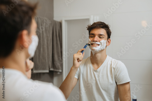 teenage, teenage, male, man, bathroom, morning, routine, home, indoor, stubble field, hygiene, shave, beauty, attractive, lifestyle, face, young, moustache, skin, mirror, healthy, beard, foam, care, clean, hair, adult, treatment, conscious, confidence, 1, racked, idea, towel, everyday, cream, apply, appearance, person, blade, razor, real, product, indoor, hygienic, caucasian, skincare, shaver, cosmetic