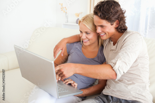 two people, adult, woman, man, blond, brown, gorgeous, couple, happy, missy, caucasian appearance, young men, blond, photogenic, background, beautiful, beauty, business, casual attire, computer, face, fun, health, healthy, home, house, indoor, interior, cyberspace, laptop, life, lifestyle, light, living room, looking, love, lover, online, pretty, read, room, scene, security, sitting, smile, sofa, studying, technology, white