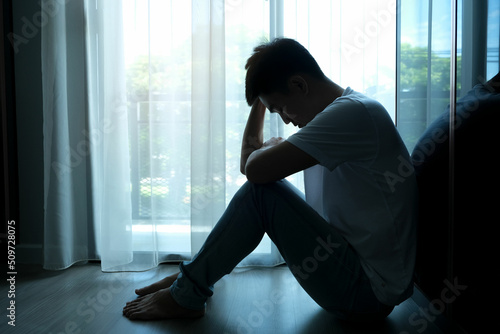 man sitting in the corner of the room have emotional and mental problems He has depression and stress from society and work. medical concept