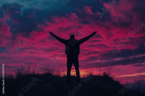 man, standing, hill, top, summit, landscape, nature, scenic, outdoors, adventure, exploration, mountain, peak, elevated, viewpoint, panoramic