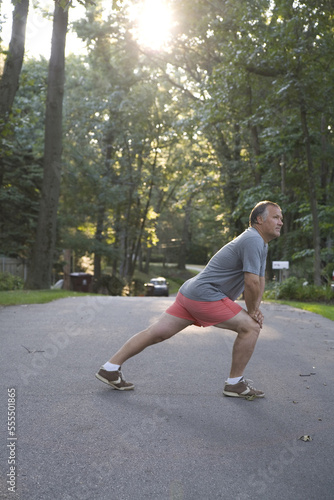 road, outdoors, daytime, sunset, exercise, healthy, recreation, sport, action, caucasian, fit, man, sunrise, dawn, life, activity, side, human, alone, active, morning, flex, individual, racked, running, stretching, image, warmup, runner, casual attire, wellness, standing, mature, person, well, pump, energetic, living, picture, pumping, 1, photograph, jog, driveway, humanity, loose, jogger, loosen, half face