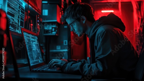 man, typing, laptop, coding, working, code, computer, datum, programming, indoor, screen, goggles, hoodie, dark, room, serious, technology, digital, sharpened, youth, person, display, equipment, electronic, network, job, office, workspace, professional, occupation, engineering, software, development, developer, cyberspace, cyber, security, information