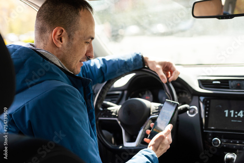 Man use mobile phone in the car, betting on sports
