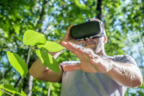 three-dimensional, activity, attractive, cyber, device, entertainment, equipment, experiencing, finger, forest, free, fun, future, futuristic, game, gaming, goggles, goggles, green, hand, photogenic, happy, headset, high technology, immersion, interactive, leaf, leisure, lifestyle, looking, male, man, modern, nature, online, perception, person, playing, pointing, reality, summer, technology, teenage, touching, tree, video, virtual, wearable, young