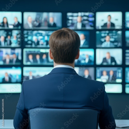 screen, interconnected, monitoring, security, control, surveillance, observation, man, screen, room, technology, datum, system, operator, console, display, visual, information, analysis, alert, network, digital, equipment, communication, infrastructure, electronic, workplace, job, professional, engineer, technician, command, center, indoor, interior, modern, computer, software, hardware, desk, chair, panel, light, sharpened, attention, watching, guarding, protecting, defense