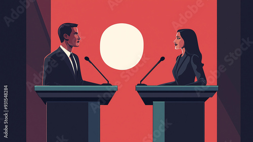 politician, political, debate, vector, illustration, cartoon, male, woman, scene, style, graphic, art, election, fun, colourful, discussion, government, politic, person, standing, people, suit