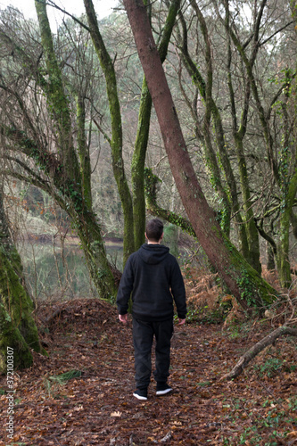 man, walking, forest, hiking, nature, tree, foliage, young, leaf, autumn, casual attire, sport, activity, lifestyle, healthy, atmosphere, leisure, life, outdoors, one person, path, pathway, trail, backview, rural scene, destination, exploration, get-away, freedom, adventure, male, adult, remote, timberland, scenic, countryside, rural, natural, boy, teenage, day, person