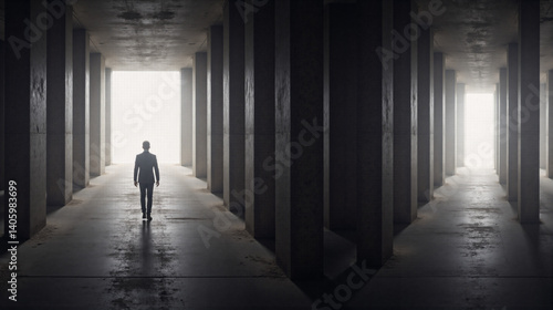 Man Walking Towards Light at End of Tunnel: Hope, Future, Opportunity, Decision, Urban Exploration