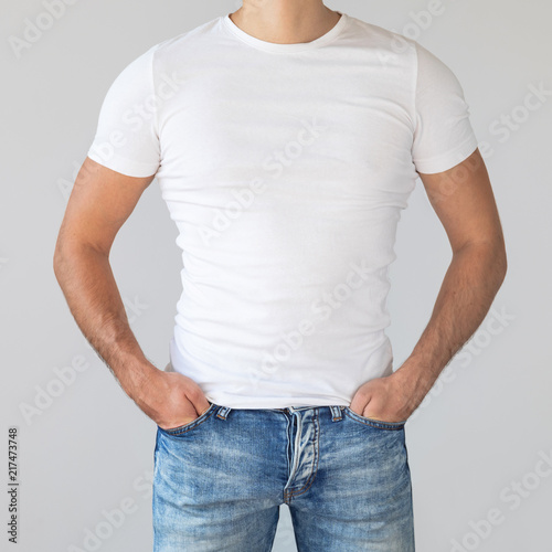 shirt, white, man, blank, guy, isolated, young, t-shirt, design, boy, male, template, front, space, background, model, mock-up, empty, cotton, casual attire, person, print, clothing, concept, fashion, people, standing, jean, posing, advertising