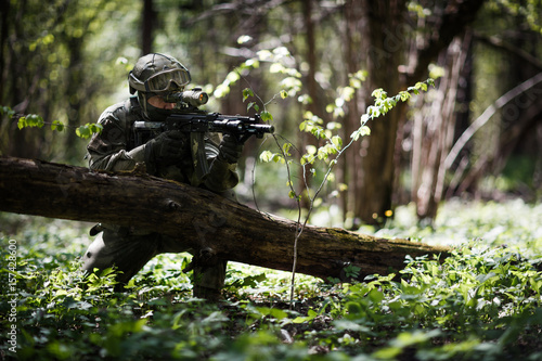 adult, soldier, man, helmet, camouflage, weapon, machine, reconnaissance, operation, teaching, battle, tree, private, field, force, holding, wood, tactic, subdivision, scope, munition, army, mission, ambush, guard, shoot, operator, military, projection, target, fight, sharpshooter, protection, reconstruction, defense, male, conflict, evening, people, professional, dangerous, game, teamwork, training, protect, portrait, arm, task, wood, day