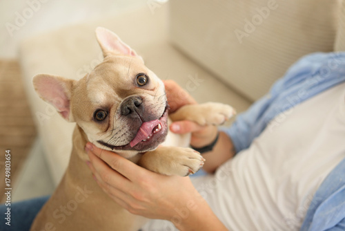 adorable, adult, animal, apartment, background, beautiful, breed, bulldog, canino, care, closeup, companion, couch, cute, dog, doggy, doggy, domestic, french, friends, friendly, funny, guy, hair, hand, happy, healthy, home, house, indoor, love, lovely, loyal, male, man, muzzle, owner, pedigree, person, pet, puppy, purebred, room, smart, sofa, together, young