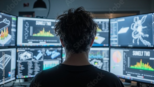man, observing, behind, technology, innovation, information, future, creative, business, computer, monitor, display, modern, professional, workspace, screen, cyberspace, communication, artificial intelligence, workplace