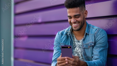 man with phone on purple background
