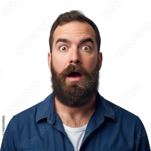 man, shocked, surprised, expression, face, beard, eye, open, mouth, astonished, amazed, emotion, human, male, portrait, head shot, isolated, transparent, background, cut-out, white, studio, shot, close, up, caucasian, adult, person