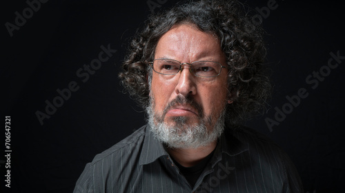 frown, madness, stress, aggressive, negative, frustrated, professional, emotion, portrait, angry, arm, clothing, copy space, model, eye, photogenic, studio, moustache, smile, adult, style, natural, head, smart, age, attitude, real, art, human, dramatic, curly, dark, black, background, beard, isolated, long hair, man, male, looking, long-haired, lifestyle, expression, attractive, bearded, appearance